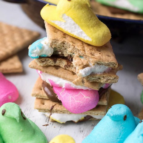 These Peeps S’Mores are the perfect Easter treat! They are a great way to enjoy those classic, favorite Easter marshmallow candies. You can make them in a skillet or in the microwave.