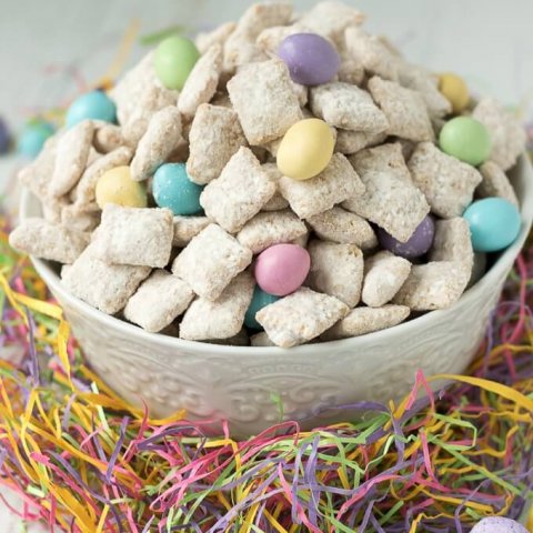 This Easter Muddy Buddies Recipe is a sweet and salty dessert snack with cereal coated in white chocolate and peanut butter, customized with your favorite Easter-themed candies. Try this delicious snack at your next Easter or Springtime gathering!