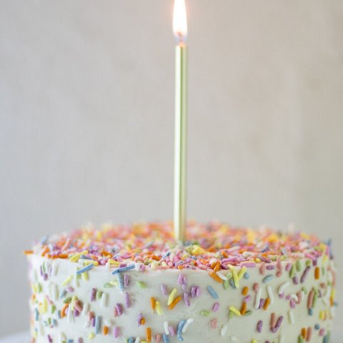 This 1st Birthday Cake recipe has 2 tiers, 6-inch diameter layers of delicious banana bread cake with a cream cheese frosting – all naturally-sweetened of course 🙂 Top with all natural sprinkles for the cutest 1st Birthday cake ever! (gluten-free option)