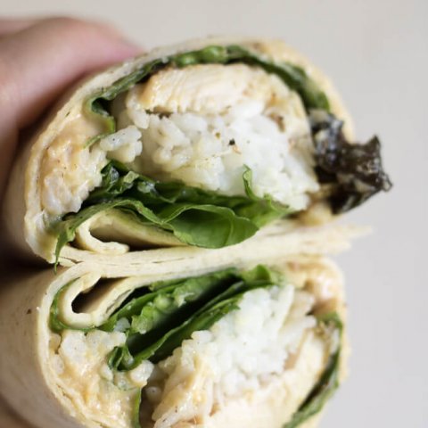 This Chicken Rice Hummus Wrap recipe is a perfect way to use up chicken leftovers and have a healthy, filling lunch at the same time.