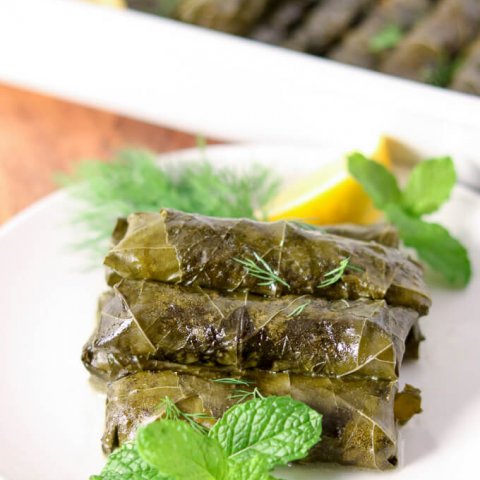 These Stuffed Grape Leaves are a rice-filled, Mediterranean appetizer or side dish flavored with mint, dill, and lemon. These Vegetarian Dolmas are a healthy comfort food perfect for entertaining and potlucks.